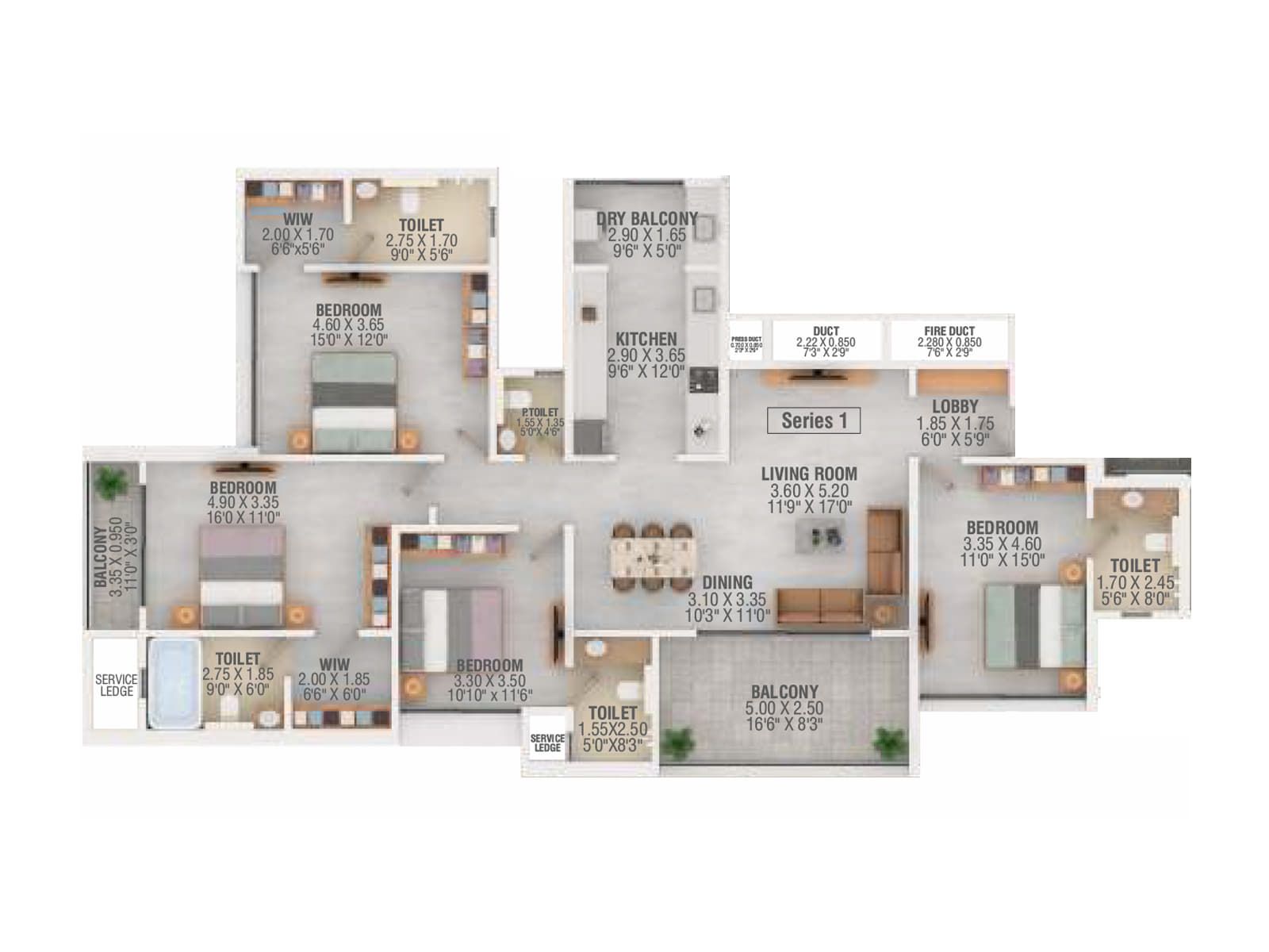 Carpet Area : 1278 - 1778 Sq.Ft.